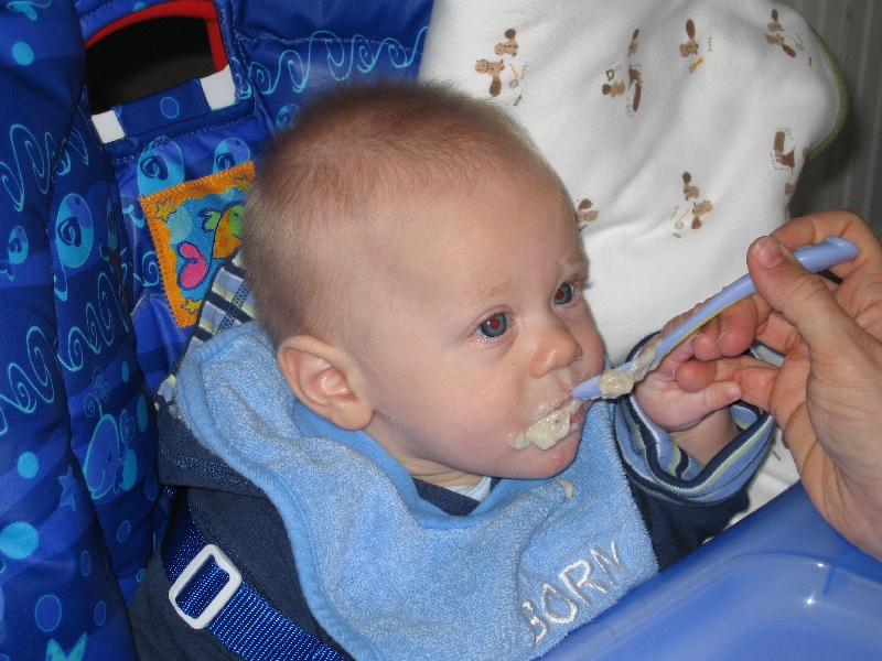 Timothy's first Peas (with yummy Oatmeal!)